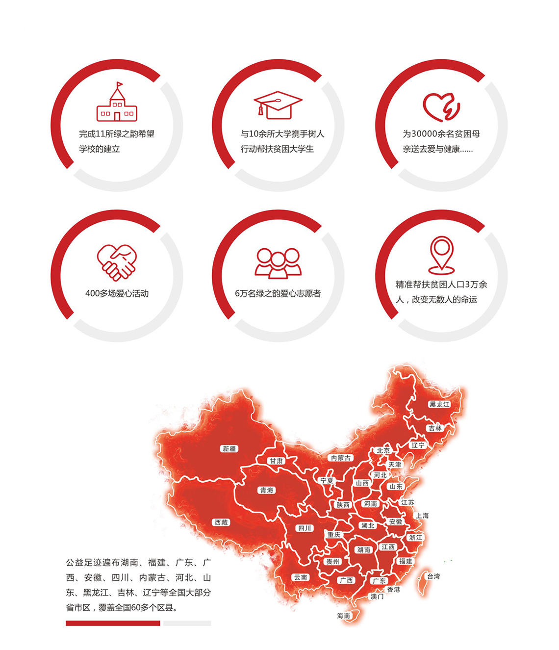 綠之韻公益基金會陸續(xù)投入1000萬元開展綠之韻樹人行動——以大學生影響小學生,開展“精神扶貧、勵志教育”活動,首先在選定的大學里以現(xiàn)金的形式資助困難大學生,受資助大學生后期受邀到綠之韻希望小學進行志愿支教活動,搭建起大學生與綠之韻……