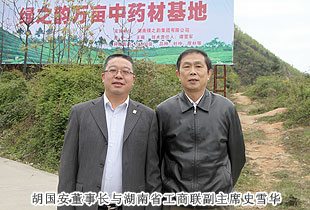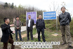 2013年4月13日,為深入了解湖南省“萬企聯(lián)村?共同發(fā)展”30個省級優(yōu)秀示范項目之一的——綠之韻益陽安化萬畝中藥材種植基地建設情況,湖南省工商聯(lián)副主席史雪華、湖南省工商聯(lián)扶貧處處長甘露、會員處處長謝明亮、副處長張耿、中共湖南省委統(tǒng)戰(zhàn)部經(jīng)濟處副處長周桂忠一行赴綠之韻安化萬畝中藥材基地實地考察。中共安化縣委常委、政法委書記羅必勝,安化縣冷市鎮(zhèn)鎮(zhèn)長周華山,湖南省政協(xié)委員、省工商聯(lián)常委、長沙市工商聯(lián)副主席胡國安陪同考察。