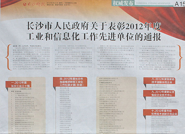 2013年3月12日,長(zhǎng)沙市工業(yè)和信息化工作暨第二屆企業(yè)技術(shù)創(chuàng)新大會(huì)在市政府召開(kāi),綠之韻集團(tuán)作為獲獎(jiǎng)企業(yè)受邀出席了此次會(huì)議。