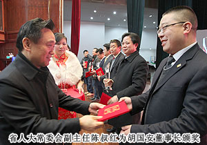 作為業(yè)界楷模的胡國安董事長,因其自身卓越的創(chuàng)業(yè)活動和非凡的企業(yè)管理經(jīng)驗,以及頗受贊譽(yù)的社會聲望和影響力,獲評“2012年度湖南省最受職業(yè)經(jīng)理人尊敬的十大企業(yè)家”,省人大常委會副主任陳叔紅為胡國安董事長授予獎杯和榮譽(yù)證書。胡國安董事長表示:“湖南經(jīng)濟(jì)的騰飛造就了一大批杰出企業(yè)家,如今,要將企業(yè)家個人的智慧內(nèi)化為企業(yè)的靈魂,就有賴于經(jīng)理人制度的發(fā)展和完善。綠之韻集團(tuán)無論在制度設(shè)計上還是管理上,都注重對職業(yè)經(jīng)理人、對人才的長期培養(yǎng),一批批優(yōu)秀的專業(yè)人才在綠之韻迅速崛起,使企業(yè)運(yùn)作更加職業(yè)化和市場化。綠之韻的成功不僅在于做大做強(qiáng)了企業(yè),更重要的是能培養(yǎng)一支忠誠感強(qiáng)、能夠不斷創(chuàng)造高績效的職業(yè)經(jīng)理人隊伍?!?br/>
