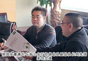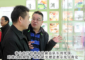 2012年12月13日下午,湖南省公安廳經(jīng)偵總隊(duì)副總隊(duì)長(zhǎng)劉先國(guó)、湖南省公安廳經(jīng)偵總隊(duì)四支隊(duì)副支隊(duì)長(zhǎng)楊輝斌一行四人在湖南省公安廳特邀監(jiān)督員、綠之韻集團(tuán)董事長(zhǎng)胡國(guó)安、董事常務(wù)副總裁勞嘉的全程陪同下,蒞臨綠之韻集團(tuán)調(diào)研視察工作。