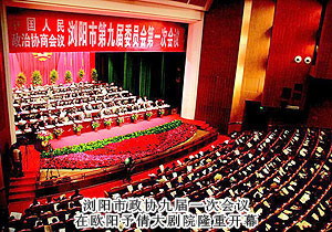 2012年11月24日,政協(xié)瀏陽(yáng)市第九屆委員會(huì)第一次會(huì)議在歐陽(yáng)予倩大劇院隆重開幕。新一屆市政協(xié)委員聚集一堂,圍繞促進(jìn)瀏陽(yáng)科學(xué)發(fā)展、跨越發(fā)展積極建言獻(xiàn)策,認(rèn)真履行政治協(xié)商、民主監(jiān)督、參政議政的職能。