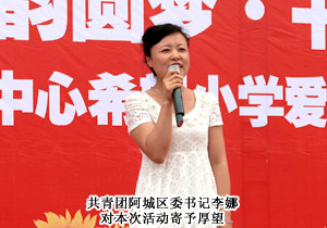 此次活動得到了哈爾濱市阿城區(qū)團委、平山鎮(zhèn)鎮(zhèn)政府的大力支持,共青團阿城區(qū)委書記李娜、平山鎮(zhèn)副書記兼鎮(zhèn)長李大鵬等受邀出席。綠之韻集團東北區(qū)業(yè)務總監(jiān)李定、黑龍江分公司副經理孫鵬程、東北區(qū)業(yè)務主任周洋,綠之韻高級經銷商徐華、劉國立、賈寶強,優(yōu)秀經銷商翟曉明、胡萬東、高志航、安姝璇、趙巾葳等參加了活動。
