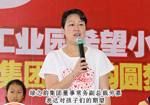 綠之韻集團(tuán)董事常務(wù)副總裁勞嘉表示:綠之韻始終關(guān)注著社會公益事業(yè),關(guān)注孩子們的成長,幫助孩子實現(xiàn)自己的學(xué)習(xí)夢想。從捐獻(xiàn)希望小學(xué),給孩子們一個寬敞明亮的學(xué)習(xí)環(huán)境,到今天綠韻圓夢?書香助學(xué)活動,我們捐獻(xiàn)書籍,滿足孩子們的學(xué)習(xí)熱情。綠之韻將始終以一個民族企業(yè)的責(zé)任要求自己,造福社會,為社會發(fā)展貢獻(xiàn)自己的力量。