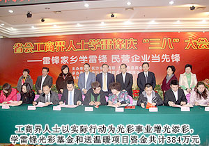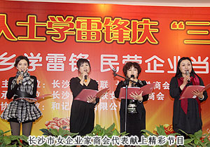 中共長沙市委副書記、市長張劍飛在會上表示,希望廣大工商界人士、女企業(yè)家要切實增強歷史使命感和發(fā)展緊迫感,爭當(dāng)長沙文明企業(yè)家,爭做學(xué)習(xí)雷鋒排頭兵,以雷鋒為榜樣,自覺地把個人發(fā)展與全市經(jīng)濟社會發(fā)展結(jié)合起來,把個人富裕與全市人民共同富裕結(jié)合起來,堅定信心,搶抓機遇,乘勢而上,以實際行動促進(jìn)我市非公有制經(jīng)濟蓬勃發(fā)展,開創(chuàng)我市工商界人士學(xué)習(xí)雷鋒精神的嶄新篇章。同時,張劍飛要求全市工商界人士要學(xué)習(xí)雷鋒同志的實干精神,搶抓機遇,加快企業(yè)轉(zhuǎn)型升級;要學(xué)習(xí)雷鋒同志的“釘子”精神,刻苦學(xué)習(xí),不斷提升自身素質(zhì);要學(xué)習(xí)雷鋒同志的“傻子”精神,努力奉獻(xiàn),積極承擔(dān)社會責(zé)任。