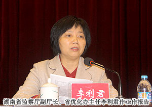 會議由湖南省紀委副書記、省監(jiān)察廳廳長葛洪元主持。湖南省監(jiān)察廳副廳長、省優(yōu)化辦主任李利君作工作報告。會上,湖南省委常委、省紀委書記黃建國發(fā)表“加強效能和優(yōu)化監(jiān)督工作,促進經濟和社會健康發(fā)展”的主題講話,充分肯定了近幾年效能和優(yōu)化監(jiān)督工作取得的成績,著重強調了認識效能和優(yōu)化監(jiān)督工作的重要性,并鼓勵全體監(jiān)督測評站點員要珍惜榮譽,強化責任,不負重托,認真履職。