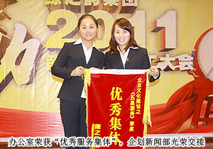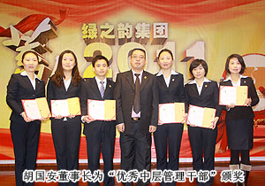 會(huì)議最激動(dòng)人心的時(shí)刻屬頒獎(jiǎng)環(huán)節(jié),為表彰過去一年里兢兢業(yè)業(yè)、踏實(shí)肯干、辛勤付出的優(yōu)秀員工,“四季度服務(wù)明星”“優(yōu)秀服務(wù)集體”“年度優(yōu)秀職員”“年度優(yōu)秀基層管理干部”“年度優(yōu)秀中層管理干部”等獎(jiǎng)項(xiàng)相繼頒發(fā)。同時(shí),通過全體同事的投票選舉,“陽光天使”獎(jiǎng)項(xiàng)首次頒發(fā),樂于助人、團(tuán)結(jié)同事的辦公室李倩婷榮獲該稱號(hào)。透過每一位獲獎(jiǎng)代表的分享,他們的工作態(tài)度:忠誠、敬業(yè)和專業(yè),無不讓人心生敬意。胡國安董事長在總結(jié)發(fā)言中表示:感謝每一位員工不離不棄的追隨,在綠之韻邁入第九個(gè)發(fā)展年頭之際,要向每一位同仁道一聲誠摯的感謝。綠之韻在2011年從各方面夯實(shí)著基礎(chǔ),為2012年的突破做好了充足的準(zhǔn)備,“蓄”為積淀,“力”為爆發(fā),只要全體綠之韻人上下一心,同心同步,我們定能龍騰海天,再創(chuàng)新高!