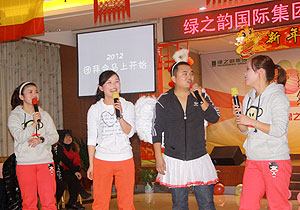 新春團(tuán)拜會(huì)是綠之韻每一位員工年終狂歡的舞臺(tái),集團(tuán)領(lǐng)導(dǎo)、分公司、下屬基地的代表們歡聚一堂,各部門全員參與,準(zhǔn)備了幽默的小品、創(chuàng)意的整蠱、歡動(dòng)的舞蹈及各類令人捧腹的節(jié)目,熱熱鬧鬧迎新春!龍騰虎躍2012,我們來了!