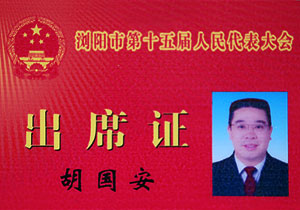 2011年12月26日,瀏陽(yáng)市第十五屆人民代表大會(huì)第六次會(huì)議在歐陽(yáng)予倩大劇院隆重開(kāi)幕。瀏陽(yáng)市人民政府市長(zhǎng)曹立軍、中共瀏陽(yáng)市委副書(shū)記吳震、瀏陽(yáng)市政協(xié)主席魯建文、中共瀏陽(yáng)市委常委、紀(jì)委書(shū)記黃陽(yáng)等各級(jí)領(lǐng)導(dǎo)出席會(huì)議。瀏陽(yáng)市第十五屆人大代表、綠之韻集團(tuán)董事長(zhǎng)胡國(guó)安出席,與來(lái)自全市各地的近400名人大代表共同為瀏陽(yáng)市的發(fā)展建言獻(xiàn)策。
