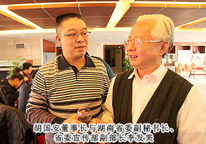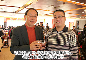 2011年12月16日上午,“央媒?湘企”深化“走轉(zhuǎn)改”座談會(huì)暨“御品德山懷”央媒好新聞?lì)C獎(jiǎng)儀式在長(zhǎng)沙普瑞溫泉大酒店舉行,來(lái)自中央70多家新聞單位駐湘記者站的100余名媒體負(fù)責(zé)人、記者、近20名湘企代表匯聚一堂,共同為深化新聞單位“走基層、轉(zhuǎn)作風(fēng)、改文風(fēng)”活動(dòng)進(jìn)行探討。原湖南省政協(xié)主席、中央新聞單位駐湘記者分會(huì)榮譽(yù)會(huì)長(zhǎng)王克英,湖南省委副秘書長(zhǎng)、省委宣傳部副部長(zhǎng)李發(fā)美,省委副秘書長(zhǎng)、省政府新聞辦主任孔和平等領(lǐng)導(dǎo)出席儀式并為獲獎(jiǎng)?wù)哳C獎(jiǎng)。綠之韻集團(tuán)胡國(guó)安董事長(zhǎng)應(yīng)邀出席會(huì)議并與在座媒體代表及各企業(yè)家展開座談?dòng)懻摗?/span>