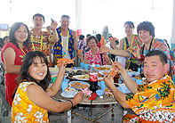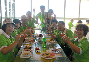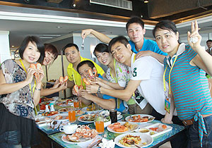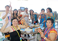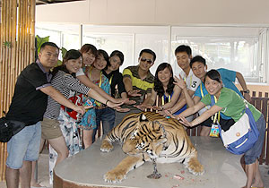 泰國是“千佛之國”,全國大大小小的廟宇有30000多座,95%的人都是非常虔誠的佛教徒,在這個文明古國,泰國人民的真誠、樸實(shí)、憨厚,給世界游客留下了深刻的印象?;锇閭円踩豚l(xiāng)隨俗,向?qū)в螌W(xué)起了泰國話,“薩瓦迪卡”成為了伙伴們彼此問候的口頭禪。