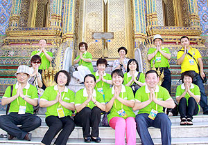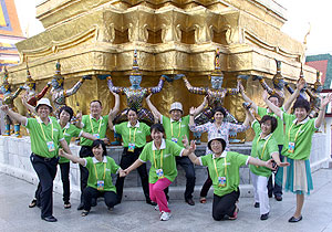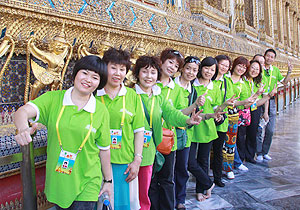 優(yōu)美迷人的亞熱帶風(fēng)光、廣博的佛教文化、獨(dú)有的民間風(fēng)俗,使泰國蜚聲海外,吸引著世界各地的游客觀光旅游,這里古老的寺廟香火旺盛,獨(dú)特的民族文化妖嬈萬分。每一年,都會有綠之韻精英踏上這片熱土,接過夢想的接力棒,向世界展示綠之韻的風(fēng)采……2011年11月19日—24日,在綠之韻集團(tuán)總裁助理兼企劃教育總監(jiān)何健的帶領(lǐng)下,近100名綠之韻精英與員工跨上了浪漫的泰國之旅。