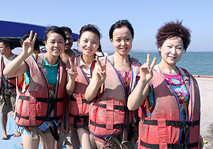 在長達(dá)40公里的芭堤雅海灘上,綠之韻的伙伴們?nèi)宄扇旱赝嫠螋[,遠(yuǎn)處藍(lán)天碧水,沙白如銀,椰林茅亭,小樓別墅掩映在綠葉紅瓦之間,一派東方熱帶獨(dú)特風(fēng)光,令人心曠神怡。同時,海上滑水、沖浪、滑降落傘等水上娛樂活動新奇刺激,在海灘南端的可蘭島還可乘坐透明長底透明長尾船欣賞海底五光十色的珊瑚奇景和熱帶魚,一切都浪漫至極。