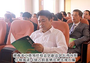 為紀(jì)念國務(wù)院頒布《直銷管理條例》和《禁止傳銷條例》實(shí)施六周年,進(jìn)一步規(guī)范直銷市場監(jiān)管,加強(qiáng)法律法規(guī)的宣傳力度,確保綠之韻做到規(guī)范自律、永續(xù)發(fā)展,2011年10月22日上午,在湖南省工商部門的指導(dǎo)下,綠之韻集團(tuán)紀(jì)念兩個《條例》學(xué)習(xí)會成功召開。湖南省工商行政管理局經(jīng)檢總隊副總隊長肖向陽擔(dān)任主講嘉賓,綠之韻集團(tuán)董事常務(wù)副總裁勞嘉、總裁助理兼企劃教育總監(jiān)何健與總部員工、優(yōu)秀經(jīng)銷商、低碳事業(yè)部代表共同參加了此次學(xué)習(xí)會議。