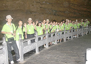 “世界溶洞全能冠軍”黃龍洞是此次張家界之旅的第一站,七月炎炎夏日,黃龍洞自然空調(diào)帶來的清涼是送給伙伴們的第一份禮物。從狹小的通道走進去,一個繽紛神秘的世界讓所有伙伴驚嘆不已。立體的洞穴結(jié)構(gòu),超過10萬平方米的龐大的洞穴空間,寬闊的龍宮廳及數(shù)以萬計的石筍,高大的洞穴瀑布,讓黃龍洞蜚聲海外。洞內(nèi)有1庫、2河、3潭、4瀑、13大廳、98廊,以及幾十座山峰,上千個白玉池和近萬根石筍。由石灰質(zhì)溶液凝結(jié)而成的石鐘乳、石筍、石柱、石花、石幔、石枝、石管、石珍珠、石珊瑚等遍布其中,無所不奇,無奇不有,仿佛一座神奇的地下“魔宮”。伙伴們穿梭在龍舞廳、響水河、天仙瀑、天柱街、龍宮等六大游覽區(qū),欣賞定海神針、萬年雪松、龍王寶座、火箭升空、花果山、天仙瀑布等100多個景點,深深陶醉在大自然神奇的懷抱里。