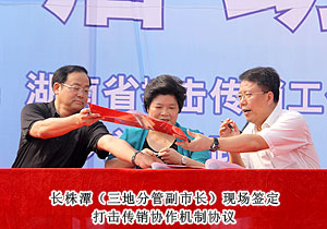 活動現(xiàn)場,湖南省打擊傳銷工作聯(lián)席會議總召集人、湖南省人民政府副省長劉力偉,湖南省打擊傳銷工作聯(lián)席會議召集人、省工商局局長劉國湘,以及省打擊傳銷工作聯(lián)席會議成員單位領(lǐng)導(dǎo)和相關(guān)處室負(fù)責(zé)人,省工商局打擊傳銷工作領(lǐng)導(dǎo)小組成員單位負(fù)責(zé)人,長沙市人民政府、株洲市人民政府、湘潭市人民政府主管打傳工作副市長,長沙縣工商、公安機(jī)關(guān)執(zhí)法人員代表,企業(yè)、社區(qū)、學(xué)生代表,各大媒體記者共計2000余人參與活動。湖南省打擊傳銷工作聯(lián)席會議辦公室主任、省工商局副局長魯先華、湖南省公安廳經(jīng)偵總隊副總隊長劉岳斌分別就湖南省打擊傳銷工作取得的成果與進(jìn)程作報告,長沙市人民政府副市長姚永春作重要工作報告。長株潭打擊傳銷協(xié)作機(jī)制簽署協(xié)議現(xiàn)場簽定,綠之韻集團(tuán)胡國安董事長作為湖南本土唯一一家獲牌直銷企業(yè)代表宣讀打擊傳銷倡議書,并建議將11月1日定為湖南反傳銷宣傳日。