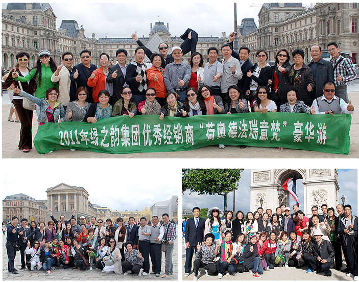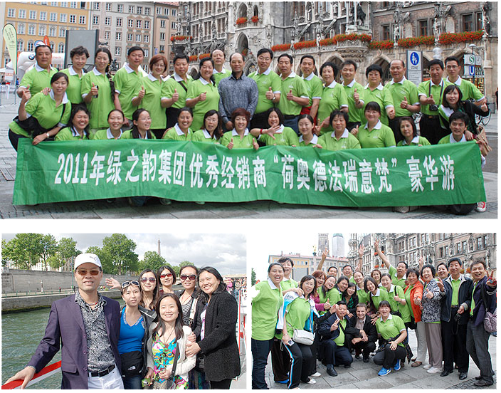 伴隨著綠之韻集團八年來穩(wěn)健的發(fā)展,夢想、榮譽、超越的烙印在每一位綠之韻精英的心靈上留下永不褪色的感動。到世界各地去旅游,是綠之韻給予營銷伙伴的承諾,從國內(nèi)著名的旅游景點出發(fā),到泰國、新加坡、韓國、馬來西亞、迪拜、歐洲,綠之韻伙伴的歡呼聲在越來越多的國度盤旋和傳遞。我們時刻能感受到,伙伴們用滿腔的熱情在愛我們的國,愛我們的家。2011年6月18日—29日,綠之韻2011“荷奧德法意瑞梵”歐洲七國豪華之旅快樂啟程,綠之韻集團執(zhí)行總經(jīng)理龔振帶領(lǐng)三十多位營銷精英和總部員工,開啟了相約歐洲的心靈之旅、夢想之旅。