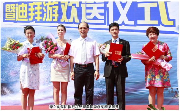 “背著萬千人的希望,緊握自己理想,成為了一道擋不住的力量……”隨著一首《堅(jiān)強(qiáng)》的現(xiàn)場高歌,似乎字字句句都唱出了埋藏在每一位綠之韻精英心中那份不滅的壯志豪情。當(dāng)榮耀的高潮還未消退,綠之韻迪拜旅游歡送會又伴隨著一曲異域風(fēng)情的《阿拉伯舞蹈》提前將旅游的快樂帶到現(xiàn)場來。四十三人組成的迪拜旅游團(tuán)心懷憧憬與歡樂接受所有家人的歡送。嘉獎令上的每一個(gè)名字背后都有著一顆滿懷激動與期待的心。作為綠之韻集團(tuán)對優(yōu)秀營銷伙伴的獎勵(lì),旅游已成為綠之韻事業(yè)快樂傳遞必不可少的一部分,而海外旅游不僅讓大家拓寬了眼界,更增強(qiáng)了讓綠之韻事業(yè)邁向國際的信心。