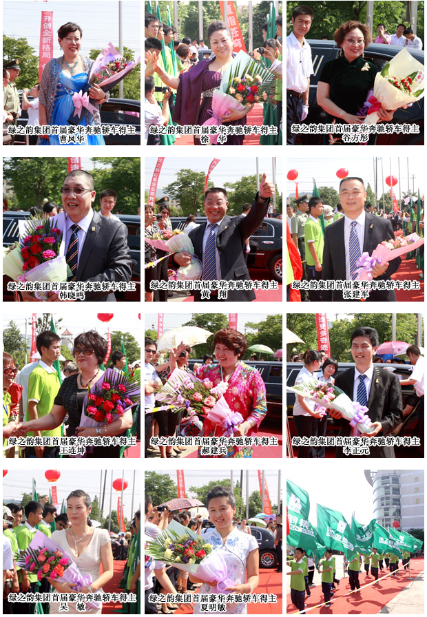 見證榮耀與激情的碰撞,感觸成功與收獲的交匯。2011年5月18日,綠之韻首屆豪華轎車頒獎盛典暨迪拜旅游歡送儀式在綠之韻集團(tuán)總部盛大舉行。作為“激情五月 夢想嘉年華”主題活動的五大活動亮點(diǎn)之一,集團(tuán)高層領(lǐng)導(dǎo)、媒體嘉賓及數(shù)千名全國各地的綠之韻精英不約而同趕赴集團(tuán)總部,共同見證首屆豪華奔馳大獎得主們的風(fēng)彩。十一位在事業(yè)成就上取得非凡成就的精英,及四十三位參與迪拜旅游的成員光榮成為綠之韻2011年度成功典范,并與現(xiàn)場精英共同分享他們從成長到成功的“逐夢之旅”。