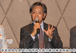 蘇澤光主席表示,最近,湖南在香港很“熱”,越來越多的港企來到湖南投資。香港貿(mào)發(fā)局將進(jìn)一步發(fā)揮窗口和橋梁作用,推動湘港兩地在現(xiàn)代服務(wù)業(yè)、創(chuàng)意產(chǎn)業(yè)等領(lǐng)域深化合作,幫助湘企借助香港平臺走向世界。