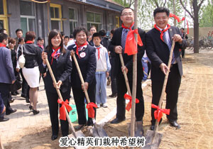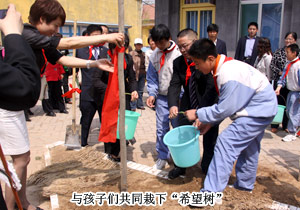 揭牌儀式結束后,胡國安先生與綠之韻愛心大使在劉可明校長的帶領下一起參觀了惠民小學的教學環(huán)境,并植下了六棵“希望樹”,希望孩子們就像青青樹苗一樣,充滿生機與朝氣,努力學習,成為國家的棟梁,將來更好地建設家鄉(xiāng)。