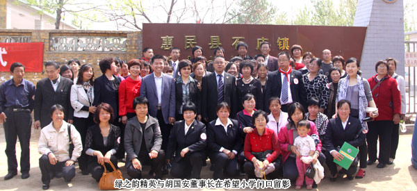 2011年4月29日,由山東省青少年發(fā)展基金會牽頭、綠之韻集團出資建設的“綠之韻惠民梁家希望小學”在“孫子故里”山東惠民縣揭牌成立。山東省青年少發(fā)展基金會副秘書長王太麗、共青團濱州市委書記張志華、惠民縣人大常委會副主任張秀葵等政府領導出席揭牌儀式。綠之韻集團胡國安董事長、綠之韻市場營銷管理中心總經理劉彥明、綠之韻慈善基金總執(zhí)行戴曉彥、山東分公司經理梁涌及綠之韻山東地區(qū)愛心經銷商共同為愛傳承,為孩子們送上人間四月天的融融暖意。