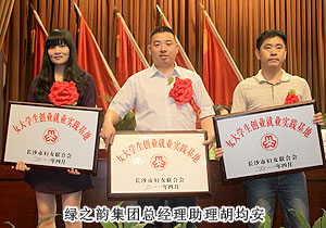 近年來,長(zhǎng)沙市各級(jí)組織和單位緊緊圍繞市委、市政府打造“創(chuàng)業(yè)之都”和創(chuàng)建全國創(chuàng)業(yè)型城市的總體目標(biāo),以“創(chuàng)業(yè)富民、巾幗示范在行動(dòng)”為載體,積極實(shí)施創(chuàng)業(yè)就業(yè)促進(jìn)行動(dòng),在全市組織開展了“巾幗創(chuàng)業(yè)示范基地”、“女大學(xué)生創(chuàng)業(yè)就業(yè)實(shí)踐基地”的評(píng)選活動(dòng)。2011年4月28日,綠之韻集團(tuán)被長(zhǎng)沙市婦女聯(lián)合會(huì)評(píng)選為長(zhǎng)沙市“女大學(xué)生創(chuàng)業(yè)就業(yè)實(shí)踐基地”。中共長(zhǎng)沙市委常委、統(tǒng)戰(zhàn)部長(zhǎng)虢正貴、副市長(zhǎng)何寄華等市級(jí)領(lǐng)導(dǎo)出席本次會(huì)議并頒發(fā)榮譽(yù)牌匾,長(zhǎng)沙市婦聯(lián)黨組書記、主席譚慧慧作工作報(bào)告。