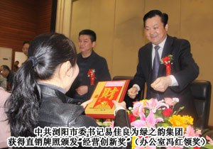 2011年3月10日,長沙國家生物產(chǎn)業(yè)基地經(jīng)濟(jì)工作會議在瀏陽市行政中心隆重召開。中共長沙市委常委、瀏陽市委書記易佳良、長沙市人民政府副市長何寄華、湖南省科技廳副廳長羅亞軍等省市級政府領(lǐng)導(dǎo)出席會議并發(fā)表重要講話。綠之韻集團(tuán)榮獲“2010年度稅收過千萬企業(yè)”“經(jīng)營創(chuàng)新獎(jiǎng)”“目標(biāo)管理一等獎(jiǎng)”“統(tǒng)計(jì)工作先進(jìn)單位” 多項(xiàng)殊榮;綠之韻迪博制藥有限公司在2010年獲評“湖南省著名商標(biāo)”獲得“名牌產(chǎn)品獎(jiǎng)”。綠之韻員工陳英、易利群榮獲“2010年度統(tǒng)計(jì)工作先進(jìn)個(gè)人”。綠之韻集團(tuán)董事長胡國安出席領(lǐng)獎(jiǎng)并接受產(chǎn)業(yè)基地下達(dá)的2011年目標(biāo)管理任務(wù)書。