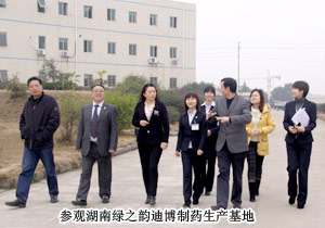 2011年2月23日,第十一屆全國人大代表、湖南省工商聯(lián)(總商會)副主席李曦、湖南省工商聯(lián)經(jīng)濟(jì)聯(lián)絡(luò)處處長肖翔一行蒞臨綠之韻集團(tuán)就湖南省“萬企聯(lián)村、共同發(fā)展”活動對企業(yè)進(jìn)行考察。在綠之韻集團(tuán)董事長胡國安的陪同下,李曦副主席一行參觀了綠之韻湖南迪博制藥生產(chǎn)廠、綠之韻GMP生產(chǎn)基地暨現(xiàn)代化物流中心、綠之韻國際大酒店等地。