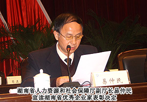 本次大會(huì),由湖南省人力資源和社會(huì)保障廳、湖南共青團(tuán)省委聯(lián)合舉辦的“湖南省優(yōu)秀青年企業(yè)家”評(píng)選活動(dòng)結(jié)果揭曉,綠之韻集團(tuán)董事長(zhǎng)胡國安憑借在健康產(chǎn)業(yè)作出的突出貢獻(xiàn)以及對(duì)社會(huì)責(zé)任的勇于承擔(dān),榮獲“湖南省優(yōu)秀青年企業(yè)家”稱號(hào),湖南省人民政府記一等功。綠之韻集團(tuán)在此次會(huì)議中向湖南創(chuàng)業(yè)就業(yè)基金捐贈(zèng)100萬專項(xiàng)愛心款項(xiàng),用于資助大學(xué)生創(chuàng)業(yè)就業(yè)。共青團(tuán)湖南省委副書記顏海林介紹說,改革開放以來,湖南廣大青年企業(yè)家活躍在經(jīng)濟(jì)建設(shè)的各個(gè)領(lǐng)域,為湖南經(jīng)濟(jì)社會(huì)發(fā)展做出了很大貢獻(xiàn)。為了激勵(lì)青年企業(yè)家為湖南經(jīng)濟(jì)發(fā)展做出更大貢獻(xiàn),省人力資源和社會(huì)保障廳在經(jīng)過評(píng)選、公示及企業(yè)家綜合指標(biāo)反復(fù)審核之后,對(duì)評(píng)出的前10名青年企業(yè)家湖南省人民政府給予記一等功的獎(jiǎng)勵(lì),另30名青年企業(yè)家湖南省人民政府給予記二等功的獎(jiǎng)勵(lì)。