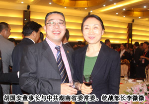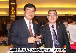 中共湖南省委書記、湖南省人大常委會主任周強、中共湖南省委副書記、湖南省人民政府省長徐守盛、國家工商行政管理總局副局長鐘攸平、中國個體勞動者協(xié)會會長甘國屏、全國工商聯(lián)副主席傅軍等近50位各級政府領導蒞臨現(xiàn)場。2009年度中國十大杰出湘商、綠之韻集團董事長胡國安應邀出席,他表示:綠之韻集團在各級政府的關心與支持下,七年時間成長為中西部第一家獲牌的直銷企業(yè),有責任有義務為湖南省經(jīng)濟發(fā)展做出積極貢獻。將保持高度的投資熱情和敏銳的發(fā)展目光,在湘商大會這個蘊含無限機遇的舞臺上,加強彼此交流和合作,與天下湘商共話湖南經(jīng)濟發(fā)展,打造湘商品牌!