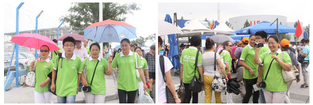 兩百多個(gè)國家的展館想要全部看完是不可能的,大家按照自己的喜好分散行動(dòng),每個(gè)人的感受與收獲都不相同。雖然每個(gè)展區(qū)前面都排著長(zhǎng)長(zhǎng)的隊(duì)伍,但現(xiàn)場(chǎng)仍是井然有序,綠之韻人標(biāo)志性的綠色T恤與園區(qū)志愿者的服裝十分相似,使得總有許“粗心”的游客把分銷伙伴當(dāng)志愿者請(qǐng)求幫助,熱心的綠之韻精英們,也十分樂意的積極為大家排憂,以自己的行動(dòng)為身上的綠衣服增添了光彩。每一個(gè)館門前的隊(duì)伍很長(zhǎng),總以為馬上要到頭了,結(jié)果山重水復(fù)又出來一圈長(zhǎng)隊(duì)??申?duì)伍又不停地在往前移動(dòng)著,所以大家也都不至于絕望,還有說有笑地等待著。隨機(jī)采訪此次參加旅游的分銷精英,有的居然一天之內(nèi)看了二十多個(gè)場(chǎng)館,提起所見、所聞、所感,眉飛色舞,紛紛感嘆累雖然累,但這樣的好機(jī)會(huì)卻真是千載難逢。作為從事綠色健康事業(yè)的分銷精英們,在“城市,讓生活更美好”的主題前面對(duì)那抹鮮亮的綠色,更增添了一份親切認(rèn)同以及自豪感。