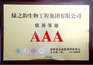 為進(jìn)一步推進(jìn)湖南誠(chéng)信體系建設(shè),加快形成守信激勵(lì)和失信懲戒機(jī)制,由湖南省工商聯(lián)企業(yè)服務(wù)中心與湖南省企業(yè)信用評(píng)價(jià)中心組織對(duì)全省工商企業(yè)進(jìn)行了信用評(píng)價(jià),將企業(yè)分為AAA、AA、A、BBB、BB、B、C等七級(jí)。經(jīng)過嚴(yán)格的審核,綠之韻生物工程集團(tuán)有限公司以95分以上的綜合信用總評(píng)分被評(píng)定為湖南省“企業(yè)信用AAA級(jí)單位”。