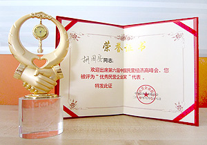 2010年8月27-29日,由“中華民營企業(yè)聯(lián)合會”舉辦的“第六屆中國民營經(jīng)濟(jì)高峰會”在北京人民大會堂隆重舉行。全國人大、全國政協(xié)及各部委領(lǐng)導(dǎo),著名經(jīng)濟(jì)學(xué)家、國內(nèi)外知名企業(yè)家、杰出華商代表500余人齊聚北京,匯聚力量,建言獻(xiàn)策,加強(qiáng)自身建設(shè)。全國政協(xié)副主席阿不來提·阿不都熱西提,國務(wù)院參事室特邀研究員保育均、國家稅務(wù)總局原副局長許善達(dá)、全國人大常委、民建中央副主席辜勝阻,全國政協(xié)常委、中央黨校副校長李君如等出席會議并發(fā)表重要講話。作為世界杰出華商協(xié)會中國總商會副會長,綠之韻集團(tuán)胡國安董事長被授予“中國優(yōu)秀民營企業(yè)家”榮譽(yù)稱號,并榮獲“民營企業(yè)社會公益事業(yè)貢獻(xiàn)獎”。中央電視臺、新浪網(wǎng)、人民日報、經(jīng)濟(jì)日報等新聞媒體給予了報道。