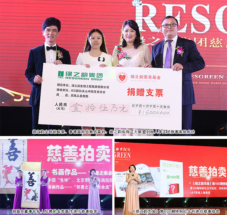 慈善拍賣,所得款項全部捐給國際關(guān)心中國慈善協(xié)會(簡稱ICC),是本次慈善名流晚宴的一大亮點。晚宴上,胡國安董事長慷慨捐出私人珍藏的當代著名書畫家陳洪作品《積善之家必有魚慶》進行慈善拍賣,被綠之韻全球戰(zhàn)略委、善德國際總裁呂雷鈞以7萬元拍得;現(xiàn)場慈善拍賣的《綠之韻天地》第100期特別紀念刊拉封及團隊系統(tǒng)報道版面成為本次活動的焦點,蒞臨出席晚宴的綠之韻家人們紛紛慷慨解囊、踴躍參加慈善競拍。“5000元、20000元、68000元、80000元……”現(xiàn)場的愛心舉牌競拍叫價,此起彼伏,愛心濃烈。最終,這項拍品以8萬元被綠之韻華翔系統(tǒng)正大聯(lián)盟創(chuàng)始人李正元拍得。