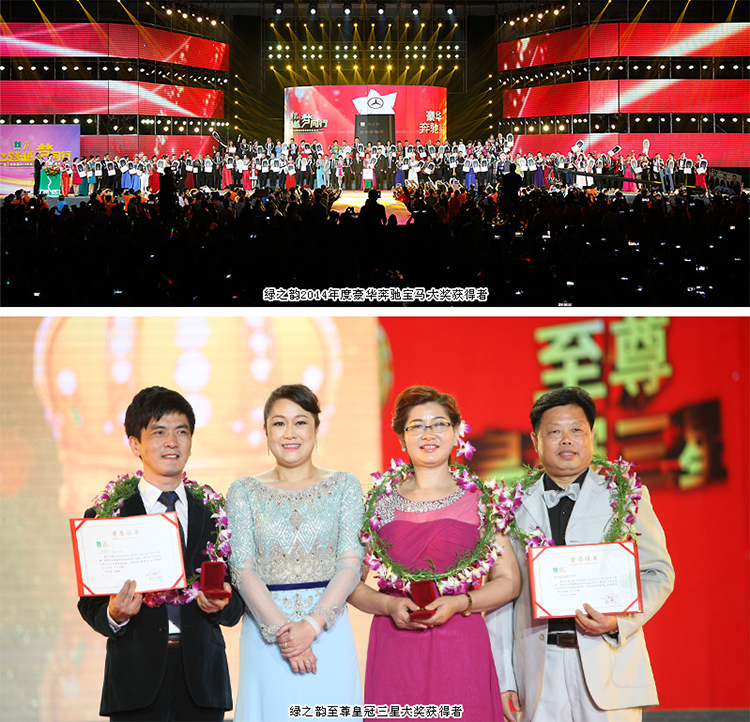 綠之韻2014新晉級(jí)皇冠一星獎(jiǎng)、二星獎(jiǎng)、三星獎(jiǎng):蒲晟犀、鮑文生、陳建軍、陳麗輝、陳立群、陳香元、曹瑛煌、陳自創(chuàng)、鄧盛等人獲得至尊皇冠一星獎(jiǎng)。陳平、范林莉、高元明(童東群)夫婦、賀紅博(陳虹萱)夫婦、賈國(guó)軍、李長(zhǎng)宇(丁翠芳)夫婦、劉鳳軍(歐建梅)夫婦等人獲得至尊皇冠二星獎(jiǎng);李政沅,周書(shū)明蘇龍輝伉儷榮膺至尊皇冠三星獎(jiǎng)。集團(tuán)副總裁、全球營(yíng)銷(xiāo)中心執(zhí)行總經(jīng)理謝尚緯,綠之韻集團(tuán)全球營(yíng)銷(xiāo)中心(中國(guó)區(qū))副總經(jīng)理劉維利,綠之韻全球戰(zhàn)略委劉尚線,綠之韻全球戰(zhàn)略委、善德國(guó)際總裁呂雷鈞等分別頒授獎(jiǎng)項(xiàng),并致以祝賀。