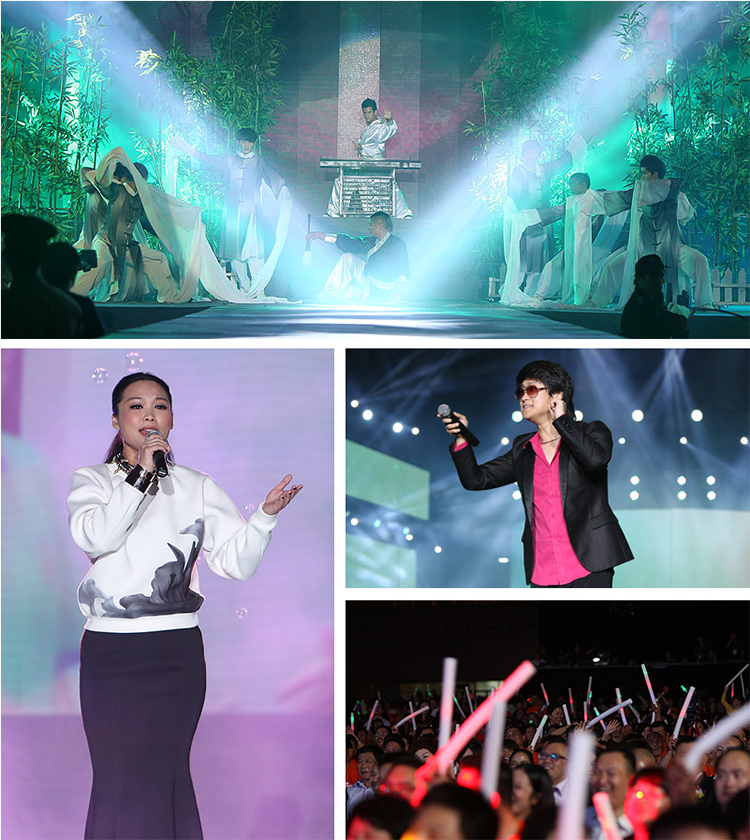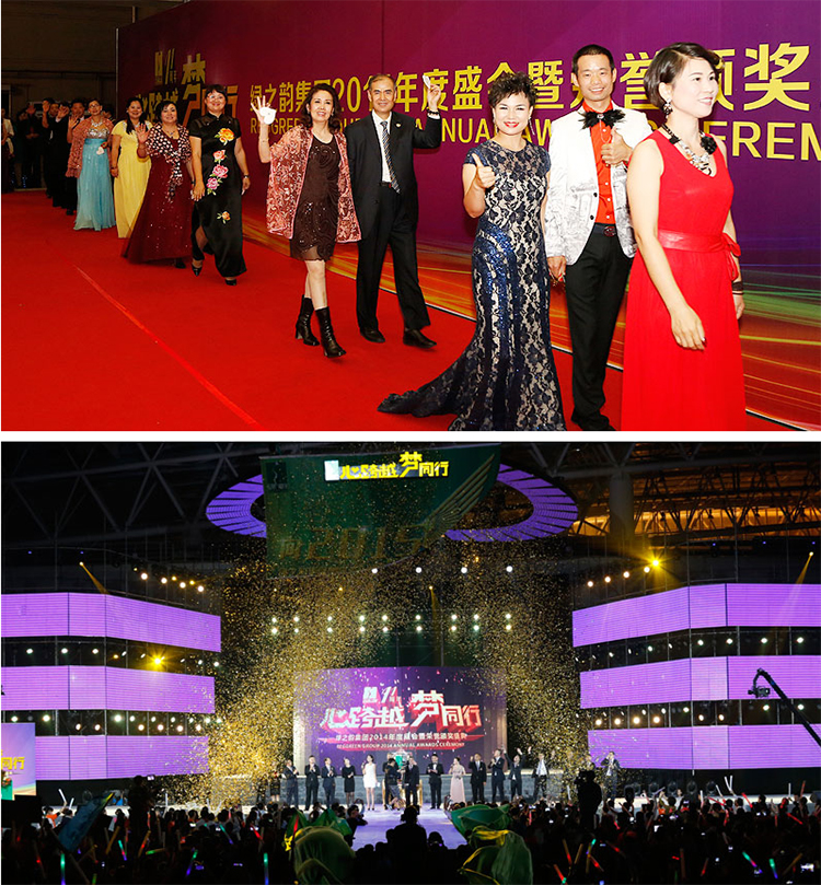 萬(wàn)人盛典,歡歌融聚;恢弘巨制,輝耀星漢。氣勢(shì)恢宏的湖南國(guó)際會(huì)展中心,“心跨越,夢(mèng)同行”綠之韻集團(tuán)2014年度盛會(huì)暨榮譽(yù)頒獎(jiǎng)盛典會(huì)場(chǎng),斥資千萬(wàn)、中部最頂級(jí)、最豪華會(huì)展中心舞臺(tái)流光溢彩、磅礴大氣,許美靜、鄭智化、雪狼等眾多巨星大腕載夢(mèng)而歌,周華健、汪峰、鳳凰傳奇等明星大咖秀激情同慶。綠之韻用最具震撼力的視聽(tīng)盛宴,熱情迎接大江南北綠之韻家人的歸來(lái),震撼開(kāi)啟十一周年慶典心夢(mèng)之旅。