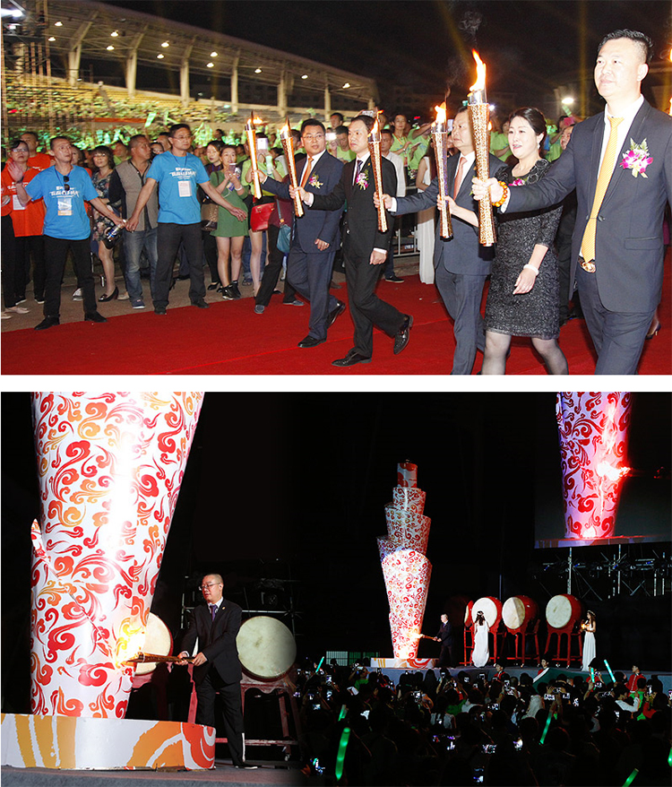湖南安化,雪峰山下圣火燎原;年會(huì)盛典,致敬最美創(chuàng)業(yè)時(shí)代。大會(huì)現(xiàn)場(chǎng),歷時(shí)近兩個(gè)月時(shí)間在全國(guó)市場(chǎng)接力傳承的綠之韻創(chuàng)業(yè)薪火傳遞到了胡國(guó)安董事長(zhǎng)、綠之韻集團(tuán)董事常務(wù)副總裁勞嘉、集團(tuán)高管和綠之韻全球戰(zhàn)略委的手中。胡國(guó)安董事長(zhǎng)在大家的緊密簇?fù)硐伦呱现行奈枧_(tái),親手點(diǎn)燃了雄偉而神圣的慶典現(xiàn)場(chǎng)主火炬塔。神圣純潔的事業(yè)之火冉冉燃燒,象征著綠之韻人“筑夢(mèng)、追夢(mèng)、圓夢(mèng)”的創(chuàng)業(yè)征途,激發(fā)著綠之韻人奮發(fā)向上、生生不息的創(chuàng)業(yè)之魂。