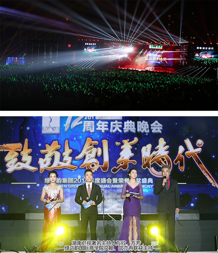 天涯地角有窮時(shí),只有相聚無(wú)盡處。2015年10月17日,綠之韻集團(tuán)十二周年華誕慶典在湖南瀏陽(yáng)體育中心盛大舉行。綠之韻家人們?nèi)缙诙?,八音迭奏,歡聲雷動(dòng),攜手共慶綠之韻十二周年生日快樂(lè),致敬偉大創(chuàng)業(yè)時(shí)代!