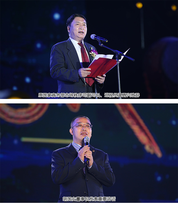 聲光集束,斑駁陸離,呼喊聲此起彼伏,雷鳴般的掌聲震耳發(fā)聵,胡國(guó)安董事長(zhǎng)來(lái)了,面對(duì)現(xiàn)場(chǎng)15000多雙炯炯目光的聚匯,意氣風(fēng)發(fā)地出現(xiàn)在了慶典盛大舞臺(tái)上。