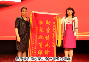 一直以來,綠之韻內(nèi)蒙古的愛心經(jīng)銷商們總是活躍在各項(xiàng)公益慈善中,將回饋社會(huì)、撒播愛心作為永恒不變的主題。慶典現(xiàn)場,王連坤、郝建兵、張聞?dòng)?、張聞華、張弘菲、劉美成、周淑梅、大高娃、閆素琴、喬桂英、丁文慧、秦慧、黃麗、楊玉蓮14名愛心經(jīng)銷商為呼和浩特市回民區(qū)通道街小學(xué)捐贈(zèng)善款兩萬元,為孩子們建立流動(dòng)圖書館,用愛托起孩子們茁壯成長的藍(lán)天。副總經(jīng)理何健為這14名愛心代表頒發(fā)了“2012年度綠之韻愛心慈善大使捐款榮譽(yù)證書”,可愛的孩子們也送上了精心準(zhǔn)備的詩歌朗誦和舞蹈表演。愛心代表王連坤表示:很高興能為這次助學(xué)活動(dòng)盡一份力,同時(shí)也希望更多的人加入到慈善事業(yè)中,將承載著愛心的“接力棒”永遠(yuǎn)傳遞下去。