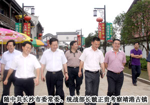據(jù)悉,由于交通不便、基礎(chǔ)設(shè)施較差,風景秀美、資源豐富的雙起橋村一直富不起來。胡國安董事長表示:“綠之韻集團一直致力于三農(nóng)產(chǎn)業(yè)的發(fā)展,目前也為許多地區(qū)的農(nóng)民創(chuàng)富創(chuàng)造了條件,通過這次考察進一步了解了農(nóng)村項目需求點,有好的投資項目將積極引進這些相對還比較貧困的地區(qū),實現(xiàn)村企共建?!?br /> 隨后,胡國安董事長與中共長沙市委黨校學習班同學一同隨中共長沙市委常委、統(tǒng)戰(zhàn)部長虢正貴前往靖港古鎮(zhèn)考察。