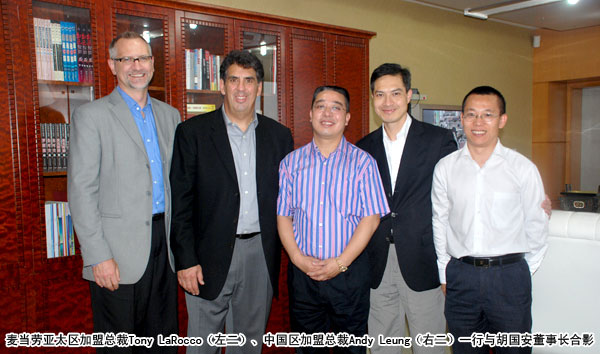 考察團(tuán)一行先后參觀了湖南綠之韻迪博制藥有限公司及綠之韻總部辦公大樓,整潔的生產(chǎn)線、舒適的辦公環(huán)境以及獨(dú)特的企業(yè)文化得到了國際友人的贊譽(yù)。座談會上,麥當(dāng)勞亞太區(qū)加盟總裁Tony LaRocco向胡國安董事長詳細(xì)咨詢了綠之韻整合分銷經(jīng)營模式的現(xiàn)狀和優(yōu)勢,并研讀了綠之韻加盟專賣店管理手冊,與胡國安董事長針對麥當(dāng)勞在湖南地區(qū)未來的發(fā)展和管理方向展開討論。座談會在友好、熱情的氛圍中進(jìn)行,胡國安董事長表示:麥當(dāng)勞在全球的飛速發(fā)展有目共睹,企業(yè)之間互相學(xué)習(xí),借鑒經(jīng)驗(yàn),對企業(yè)的發(fā)展大有裨益。綠之韻集團(tuán)今后將密切與知名企業(yè)進(jìn)行互訪,在不斷學(xué)習(xí)中提升綠之韻的品牌競爭力。