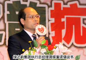 共青團長沙市委副書記彭勇在致辭中表示:感謝充滿愛心的綠之韻人,繼汶川大地震捐款及在湖南開展的樹人行動愛心助學(xué)之后,綠之韻集團再一次聯(lián)合共青團市委、青少年發(fā)展基金會,慷慨解囊,救助危難,勇于承擔(dān)社會責(zé)任的民族胸襟值得表揚和稱贊。