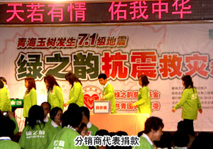 截止2010年4月18日15:00時,綠之韻集團現(xiàn)場共募得30772元愛心善款,與此同時,全國各地綠之韻分銷商的愛心款項源源不斷匯入綠之韻慈善基金指定帳戶,捐款仍在繼續(xù)……