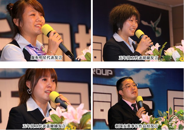 原綠之韻市部拓展部經(jīng)理諶獻(xiàn)軍榮升為綠之韻公司市場(chǎng)總監(jiān),在本次大會(huì)上他對(duì)未來(lái)綠之韻的市場(chǎng)拓展工作作出分析和展望。吉林分公司經(jīng)理劉曉桅、內(nèi)蒙古分公司經(jīng)理侯立新,以《風(fēng)雨來(lái)時(shí)路》《管理=任務(wù)、責(zé)任、實(shí)踐》為題,在員工大會(huì)做了充滿激情的述職演講。同時(shí)也向總公司傳遞著目前分公司發(fā)展呈現(xiàn)出來(lái)的喜人勢(shì)頭,讓總公司更清楚的了解到來(lái)自市場(chǎng)第一線的最新捷報(bào)。隨后,綠之韻公司2009年度評(píng)選出來(lái)的服務(wù)明星代表?xiàng)钐瘢苍诖髸?huì)上做了精彩發(fā)言。綠之韻集團(tuán)董事常務(wù)副總經(jīng)理勞嘉女士,在大會(huì)上指出目前公司發(fā)展中面臨的具體工作分析和規(guī)劃,強(qiáng)調(diào)2010年公司原有的“五心”服務(wù)將提升為“五星”服務(wù)。綠之韻集團(tuán)執(zhí)行總經(jīng)理龔振對(duì)目前綠之韻山東分公司、河北分公司、馬來(lái)西亞分公司的籌備工作進(jìn)行了部署,對(duì)未來(lái)五年的公司發(fā)展描繪出充滿激情和陽(yáng)光的藍(lán)圖。綠之韻集團(tuán)董事長(zhǎng)胡國(guó)安的總結(jié)發(fā)言將本次大會(huì)“同心、同樂(lè)、同拼搏”的主題更真切地留在了每一位員工的心中。