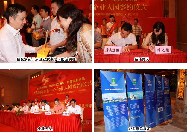 2009年9月27日,湖南環(huán)??萍紙@長(zhǎng)沙國(guó)際企業(yè)中心企業(yè)簽約入園儀式在湖南長(zhǎng)沙運(yùn)達(dá)•喜來(lái)登大酒店隆重舉行。入園簽約儀式得到了省市區(qū)領(lǐng)導(dǎo)和有關(guān)部門(mén)大力支持,各級(jí)領(lǐng)導(dǎo)、長(zhǎng)沙銀行、市青年聯(lián)合會(huì)及意向企業(yè)代表匯聚一堂,共同見(jiàn)證這次具有重要里程碑意義的盛會(huì)。綠之韻集團(tuán)常務(wù)副總經(jīng)理勞嘉女士、湖南綠之韻保健日用品有限公司執(zhí)行總經(jīng)理孫立農(nóng)先生作為此次入園十八家企業(yè)代表出席本次大會(huì),并簽訂入園協(xié)議。