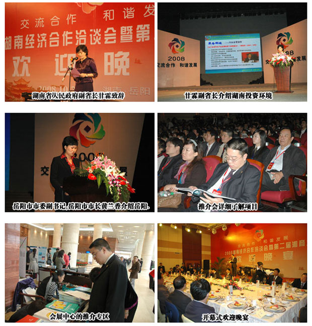 四水匯洞庭,萬(wàn)商聚巴陵。2008年10月27~29日,湖南經(jīng)濟(jì)合作洽談會(huì)暨第二屆湘商大會(huì)在巴陵古城岳陽(yáng)隆重召開(kāi),來(lái)自全國(guó)各地的黨政代表團(tuán)、國(guó)內(nèi)知名企業(yè)團(tuán)、異地商會(huì)團(tuán)、科研院所團(tuán)、港澳臺(tái)團(tuán)等共72個(gè)代表團(tuán)3000多人參與了此次大會(huì)。綠之韻集團(tuán)胡國(guó)安董事長(zhǎng)作為湖南省工商聯(lián)常委、中國(guó)青年企業(yè)家協(xié)會(huì)會(huì)員,湖南知名企業(yè)代表受邀全程出席此次會(huì)議,帶領(lǐng)董事長(zhǎng)助理馬艷等一行前往洽談合作項(xiàng)目。