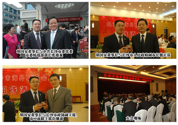 2008年10月23日上午9時(shí)整,長(zhǎng)沙市海外聯(lián)誼會(huì)第四屆一次理事大會(huì)在楓林賓館隆重舉行,來(lái)自全國(guó)包括香港、澳門(mén)、臺(tái)灣以及海內(nèi)外華商華僑在內(nèi)的283名理事出席了會(huì)議。湖南省委常委、長(zhǎng)沙市委書(shū)記陳潤(rùn)兒,湖南省委統(tǒng)戰(zhàn)部副部長(zhǎng)蔡建和到會(huì)祝賀并發(fā)表講話(huà),幾十個(gè)國(guó)家和地區(qū)的海外聯(lián)誼會(huì)、商會(huì)發(fā)來(lái)賀電。