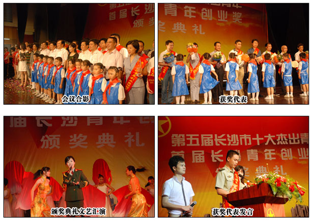 2008年6月10日上午9:38分,由共青團(tuán)長(zhǎng)沙市委、長(zhǎng)沙市勞動(dòng)和社會(huì)保障局、長(zhǎng)沙市國(guó)家稅務(wù)局、長(zhǎng)沙市地方稅務(wù)局、長(zhǎng)沙市工商行政管理局等七家單位聯(lián)合舉辦的“第五屆長(zhǎng)沙十大杰出青年”暨“首屆長(zhǎng)沙青年創(chuàng)業(yè)獎(jiǎng)”頒獎(jiǎng)典禮在長(zhǎng)沙岳麓區(qū)政府舉行。綠之韻集團(tuán)胡國(guó)安董事長(zhǎng)作為“世界杰出華商協(xié)會(huì)中國(guó)總商會(huì)副會(huì)長(zhǎng)” 、“湖南省政協(xié)委員”、以及“第四屆中國(guó)青年企業(yè)獎(jiǎng)創(chuàng)新獎(jiǎng)”獲得者,作為本次頒獎(jiǎng)典禮唯一的特邀嘉賓為獲獎(jiǎng)?wù)哳C獎(jiǎng)并發(fā)表講話。